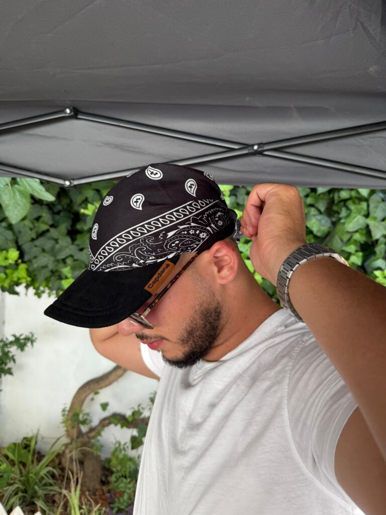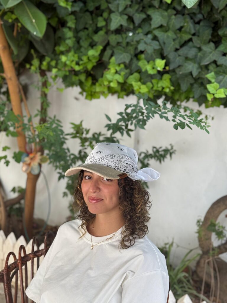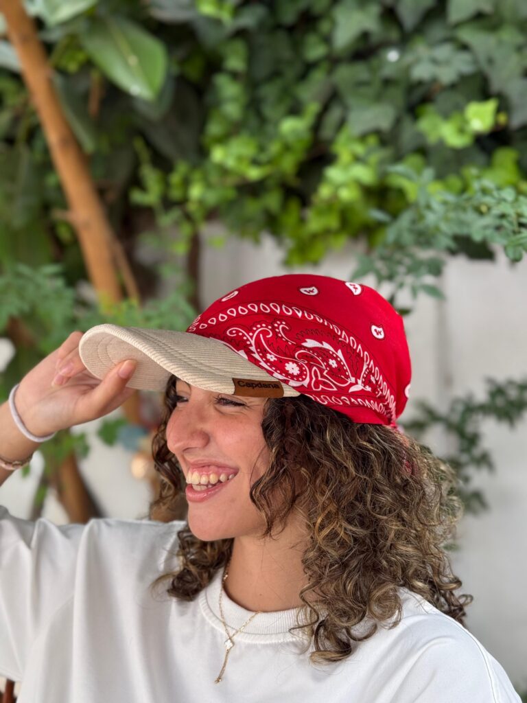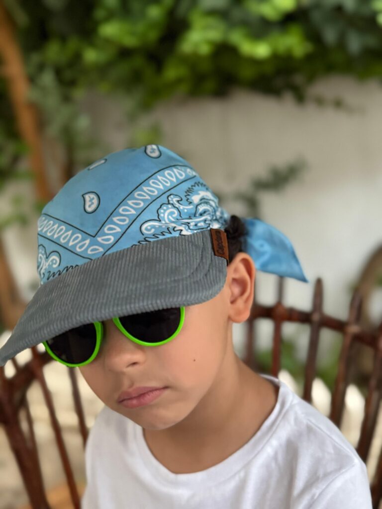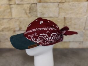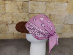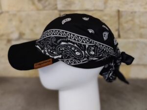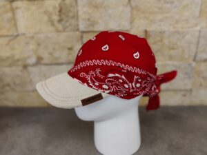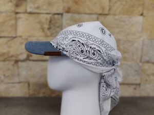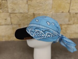 Un accessoire unique entre bandana et casquette, avec le look décontracté d’un tissu léger